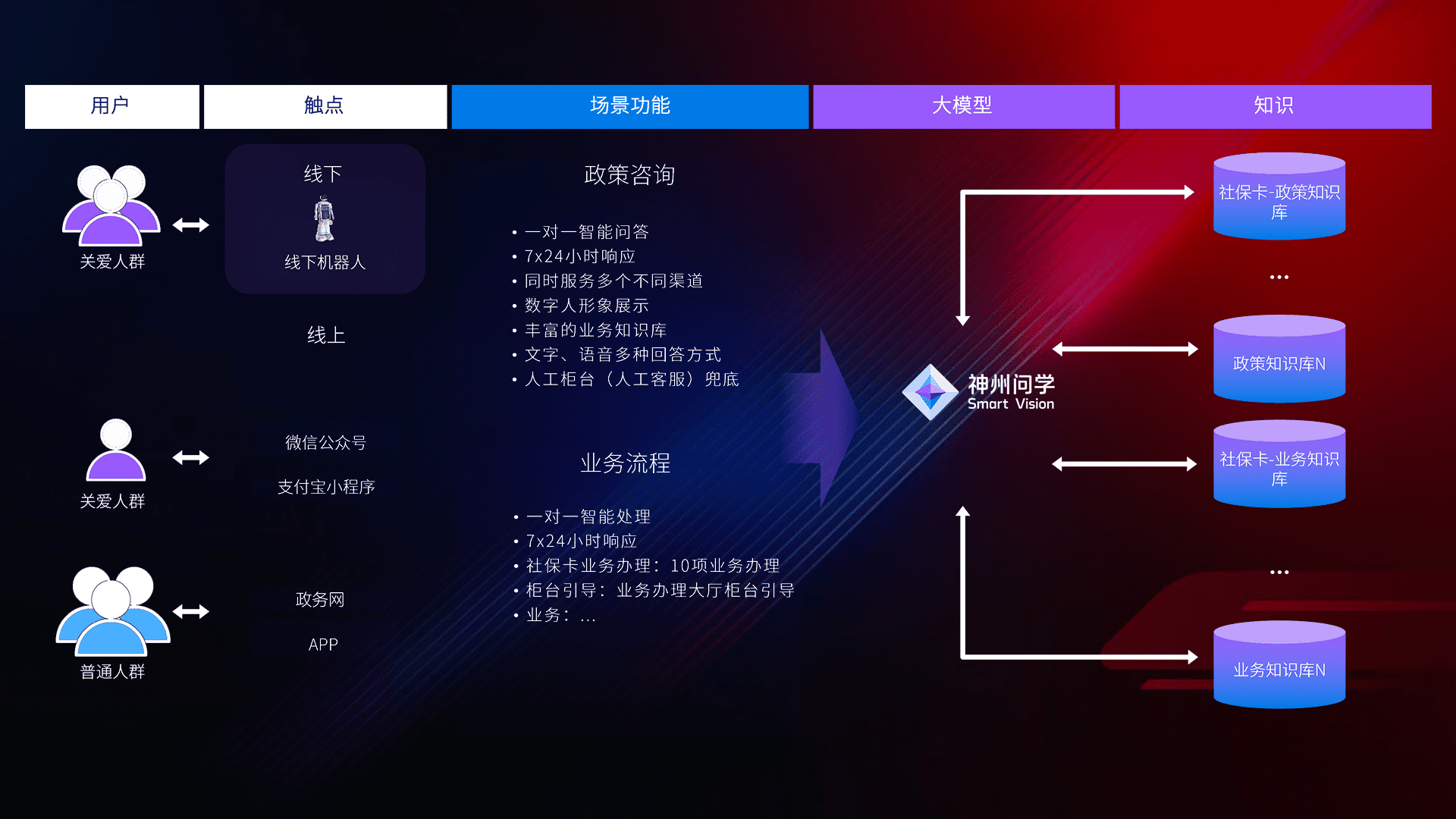 • 线上线下全覆盖:线上提供微信公众号、、、、支付宝小程序、、政务网、、、app多种渠道,,,,与线下机器人形成完整服务体系。。。